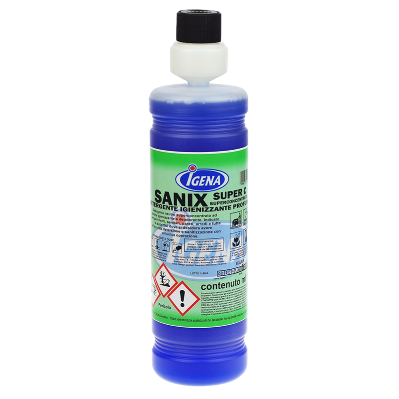 DETERGENTE SUPERCONCENTRATO SANIX SUPER C: Detergente IGIENIZZANTE superconcentrato profumato, per un elevato grado di igiene. Vedi dettagli