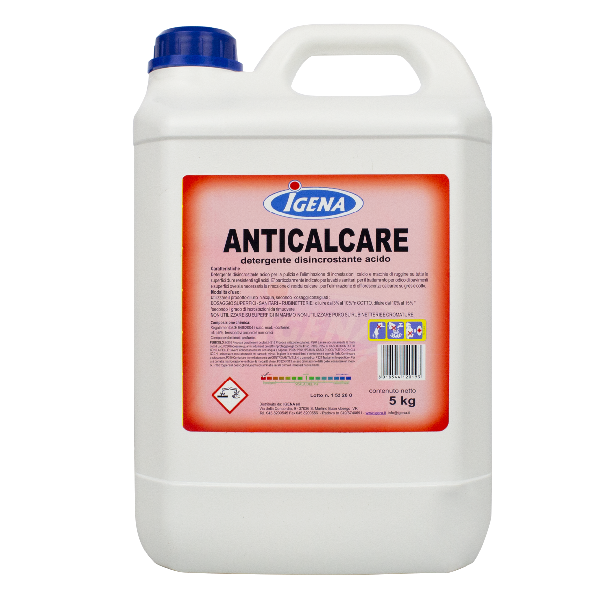 Detergente disincrostante acido per la pulizia e l’eliminazione di incrostazioni, calcio e macchie di ruggine su tutte le superfici dure resistenti agli acidi. E' particolarmente indicato per lavabi e sanitari, per il trattamento periodico di pavimenti e superfici ove sia necessaria la rimozione di residui calcarei, per l’eliminazione di efflorescenze calcaree su grès e cotto.
