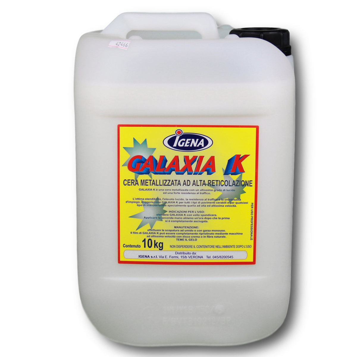 GALAXIA K è una cera metallizzata con un altissimo grado di lucido ed una forte resistenza al traffico. L’ottima stendibilità, l’elevato lucido, la resistenza al traffico e la universalità d’impiego, suggeriscono GALAXIA K per tutti i tipi di pavimenti cerabili e per qualsiasi tipo di manutenzione specialmente quella ad alta ed altissima velocità.